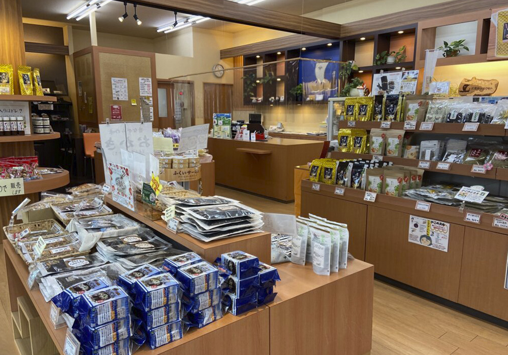 直営店での、昆布や海藻加工品など自社商品や地元名産品の販売を行っております。